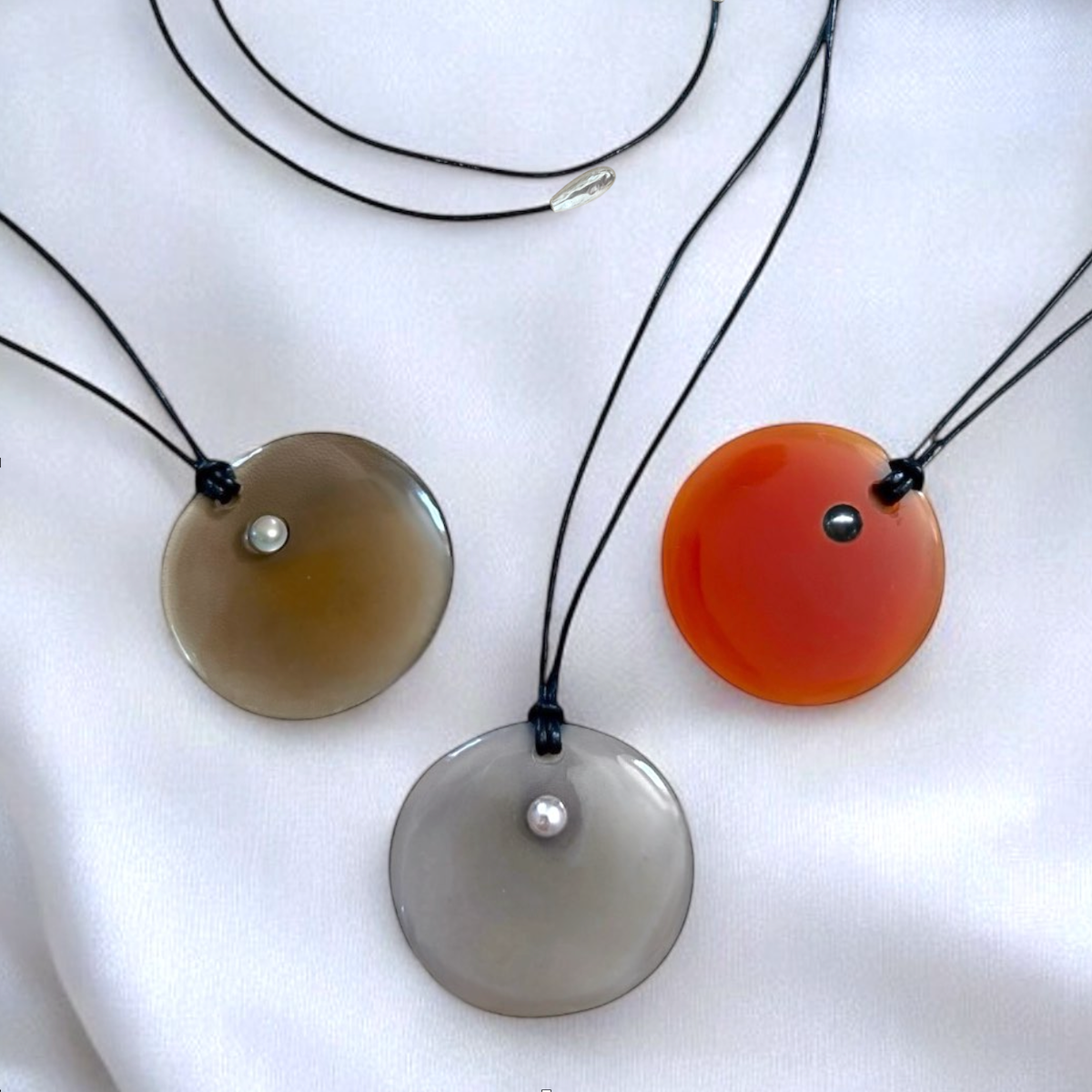 Contrast meets quiet elegance, the Luna Pendant pairs a large, polished, hand-carved clear quartz with luminous freshwater pearl. Suspended from sleek black leather cord with Sterling silver teardrop accents, it is a modern sculptural statement that moves effortlessly from day to evening. Adjustable 28” length for layering or singular impact.