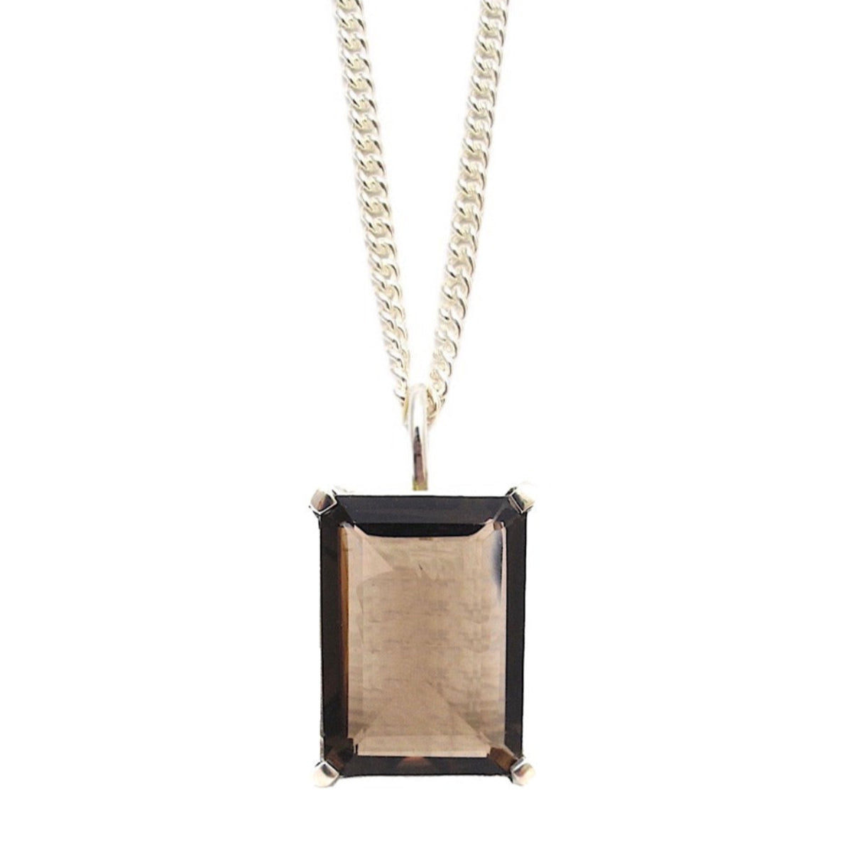 Lucent pendant with a large, smoky quartz in a Deco gold plated prong setting. 19” gold fill curb chain. A beautiful modern heirloom for everyday layering or on its own.