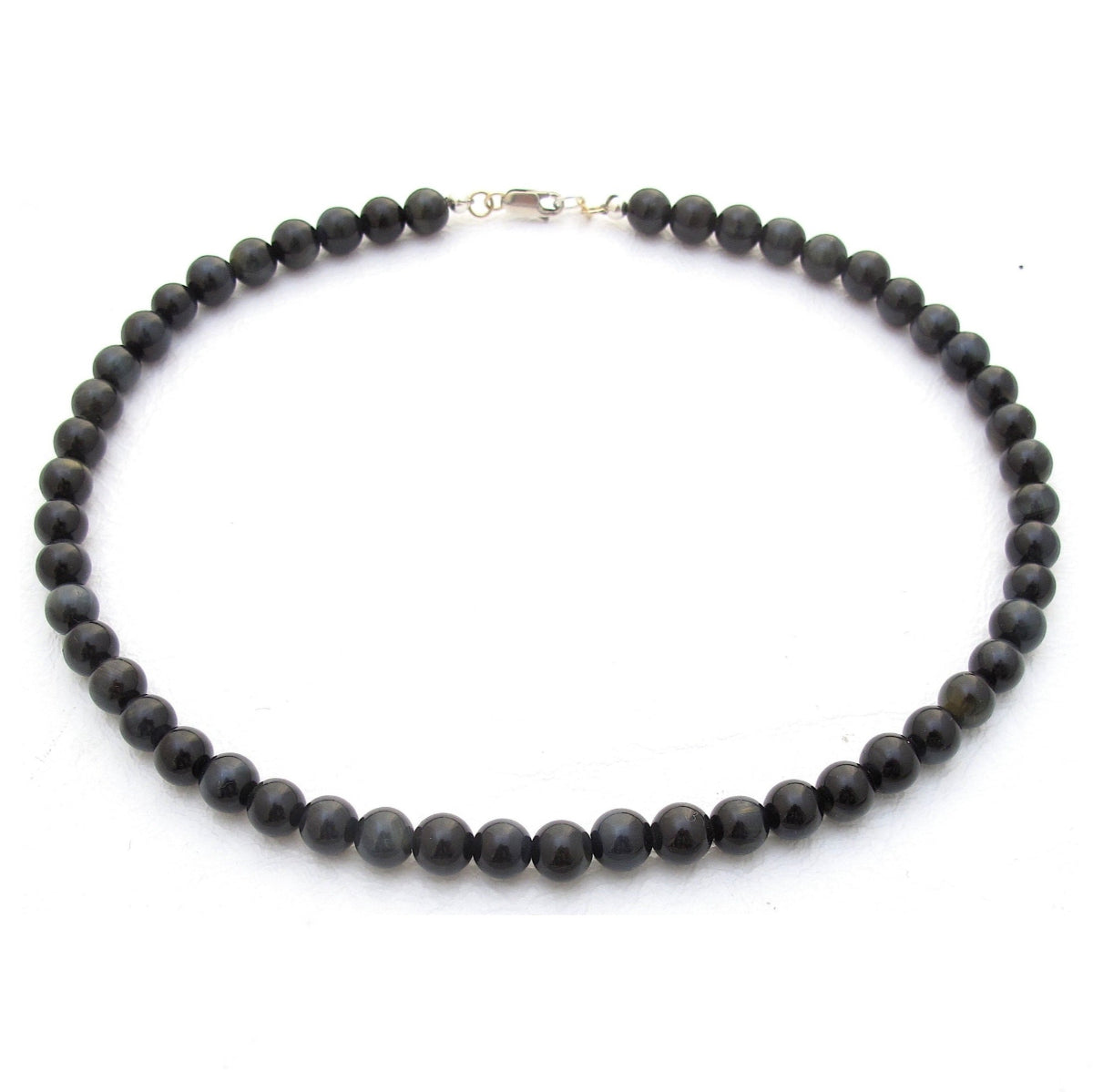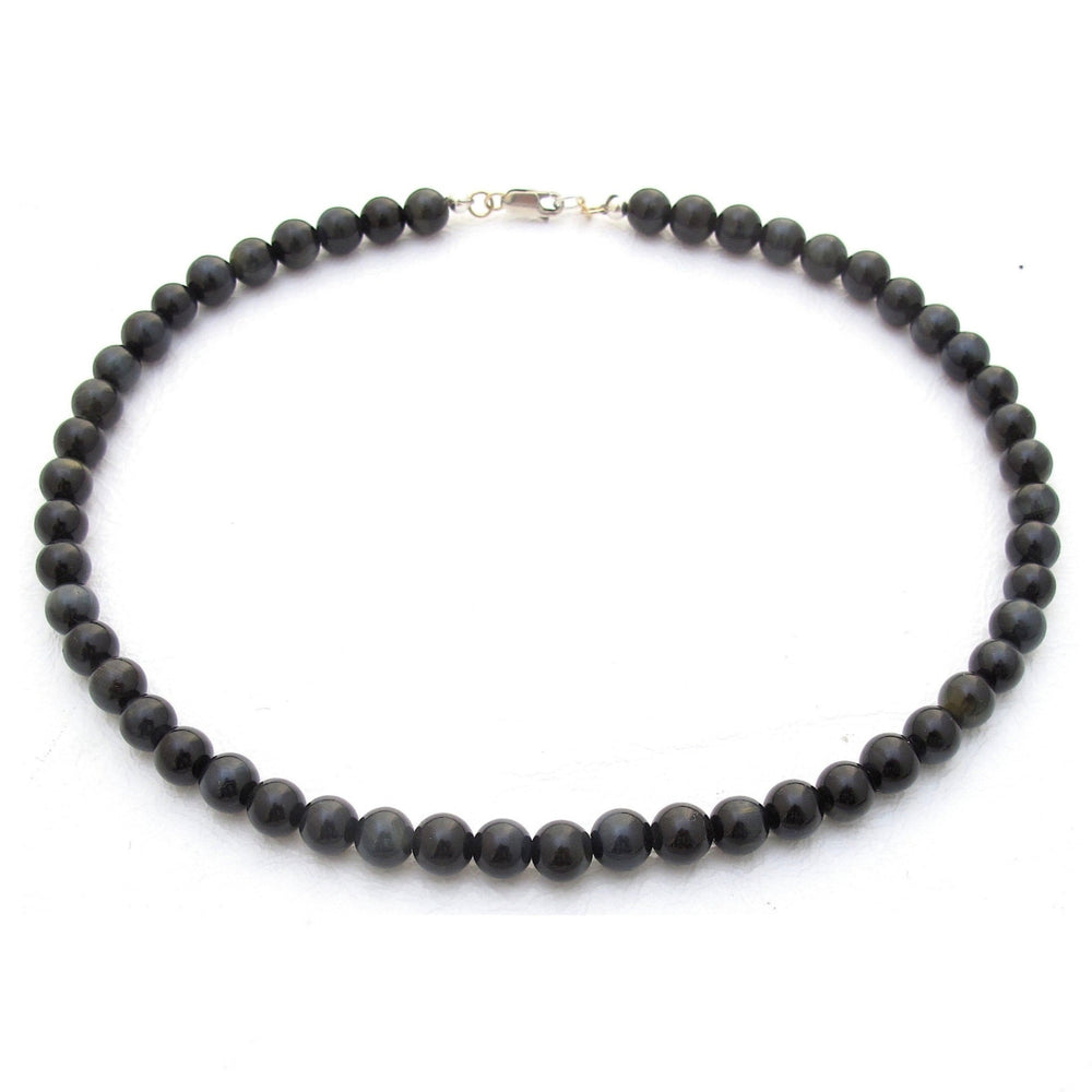 Mini Globe Chocolate Tiger's Eye collar necklace. Sterling silver clasp & 16”. A rich neckline adornment.