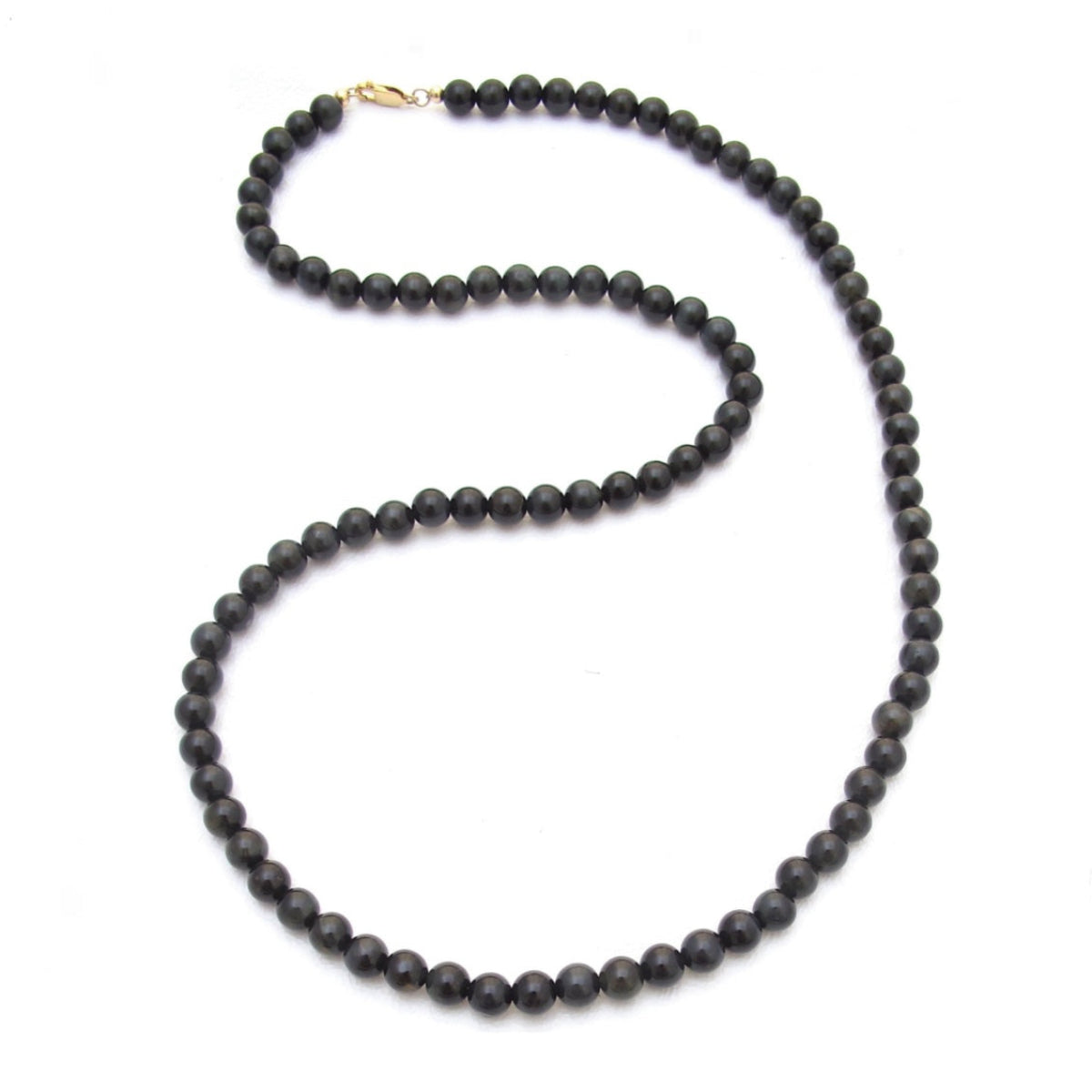 Mini Globe Chocolate Tiger's Eye necklace. Gold plated clasp, 28". A modern, simple strand.