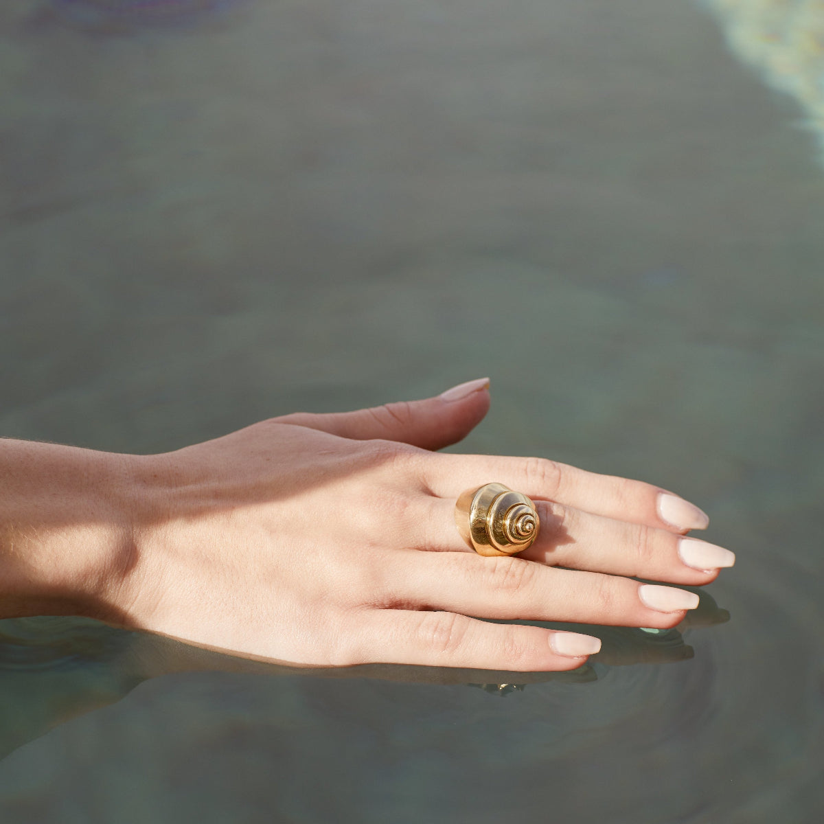 Back from the archives—our signature Turbo Shell ring. Inspired by the natural geometry of the sea and meticulously crafted in bronze, its ridged silhouette captures light with quiet intensity. Designed as an everyday statement ring and refined for evening, the Turbo Shell ring balances bold form with minimalist elegance. A true modern heirloom ring, timeless in design and enduring in craftsmanship — made to be worn, collected and cherished. Also available in gold plated and solid 14K yellow gold.